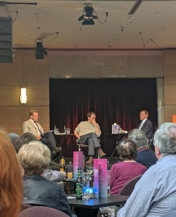 Der Applaus aus den Reihen des Publikums wärmt die Herzen des anwesenden Chemnitzer Generalintendanten Christoph Dittrich und seiner stellvertretenden Schauspieldirektorin Kathrin Brune, doch da ist man schon mittendrin in der „schnöden Debatte, wo doch so viel Kunst uns lockt“ (Morgenroth): Eingeladen zum Podiumsgespräch „Mehr als Geld – Kultur in der Fläche im Freistaat Sachsen“ sind Ministerpräsident Michael Kretschmer und Journalist Simon Strauß. Ersterem kommt die Fokussierung auf das „mehr als Geld“ sicher entgegen, hat er doch nicht, wie er gleich zu Beginn einräumt, einen neuen Kulturpakt in der Tasche wie bei seinem letzten Auftritt bei einem Theatertreffen im Jahr 2018. Letzterer, Theaterkritiker für die FAZ, hat jüngst das Buch „In der Nähe“ über Zusammengehörigkeitsgefühle geschrieben, konstituierender Baustein ostdeutscher Wirklichkeit zu DDR-Zeiten, der aber zunehmend verloren geht.