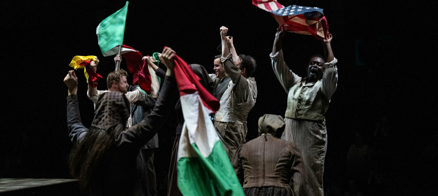 Martina Jacobi Der vielschichtige historische Hintergrund des Lynchmordes, den Pesci in „The Strangers“ verhandelt, bleibt in der Inszenierung ziemlich flach. Es fiel mir auch schwer, tiefer in die Hauptcharaktere einzutauchen, die alle ziemlich in Distanz zum Publikum bleiben. Das wird durch die historischen Kostüme und die Kulisse noch unterstützt. Die einzige Brücke, die hier ins Heute gebaut wird, sind Sänger:innen, die zu Beginn in Alltagskleidung mit Städteführern von New Orleans und Kameras wie Tourist:innen im Museum zwischen den Bühnenelementen herumlaufen und die darauf wie in Schaukästen in Szene gesetzten Hauptdarsteller:innen betrachten und fotografieren. Was hat das bei Ihnen ausgelöst?